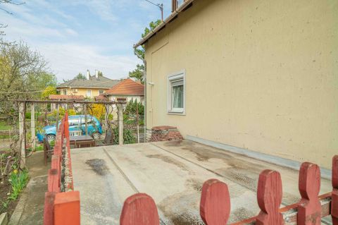 A házhoz tartozó telekterület 741 m², minden oldalról kerítéssel határolt, és több autó egyidejű parkolására is alkalmas.