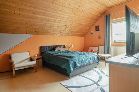 - földszint: 3 hálószoba (19.2, 17.7, és 19.2 nm) , konyha- étkező (11nm) , kamra (2.6nm), fürdőszoba (7.7nm), wc (2.5nm), közlekedő+folyosó (18nm), dolgozó szoba ( 10nm), előtér (8.4nm), terasz (15nm)
