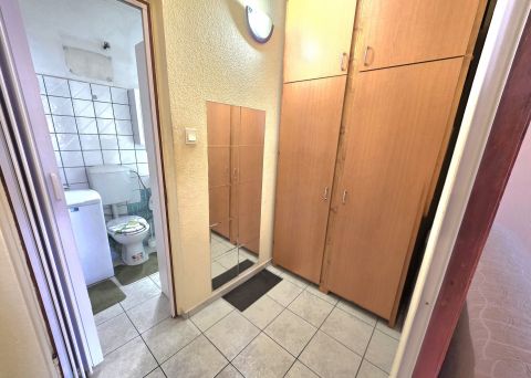 Az ingatlan praktikus kialakításának köszönhetően külön gardrób is helyet kapott, így a tárolás kényelmesen megoldott. A lakás műszakilag jó állapotú, azonnal költözhető, és 3%-os hitel igénybevételére alkalmas, így kiváló lehetőség akár első lakás vásárlásához is.