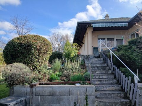Pécelen, az apácadombon eladó egy 149 nm Nappali + 3 szobás, 687 nm telken lévő körbejárható, panorámás családi ház.