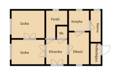 A ház három szobával rendelkezik, így családok számára is kényelmes életteret biztosít.