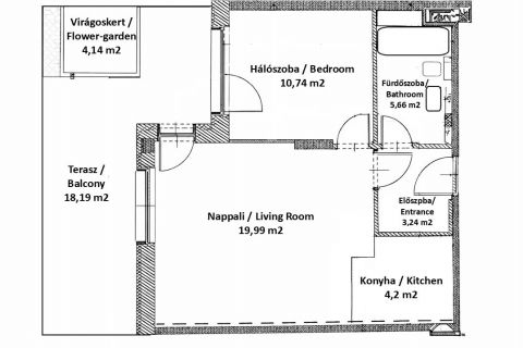 - 18,19 m²-es tágas terasz + 4,14 m² saját kertkapcsolat