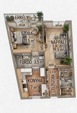 A képek és az alaprajz segítségéhez AI segítségét használtam, ezért nem mind tükrözi a valóságot.