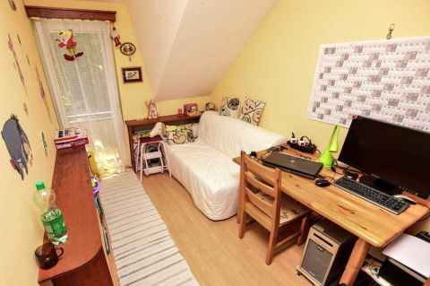 - On the second floor, there are three bedrooms, each with a separate entrance, plus a bathroom with a toilet.