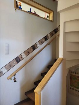 - Az első szinten,előszoba, nappali + étkező, rendkívül praktikusan, egy átadó ablakon keresztüli konyhakapcsolattal,