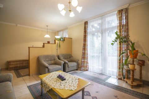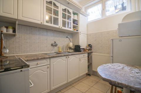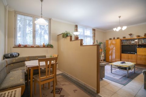 A földszinti lakrész, teljesen külön bejáratú, világos kis lakás, amelynek a bejáratát a kertből, nem pedig az utcáról lehet megközelíteni. Befektetésnek is alkalmas ez a lakrész, akár ingatlan bérbeadás címén, akár irodának is kialakítható.