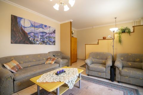 Az emeleti lakrész pedig belső kétszintes, ahol egy amerikai konyhás nappali és 3 hálószoba is megtalálható.