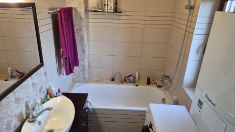 A lakás a kétszintes ház első emeletén található, önálló bejárattal rendelkezik.
