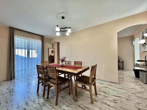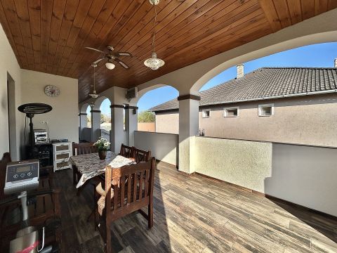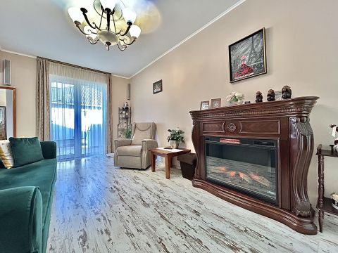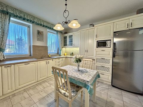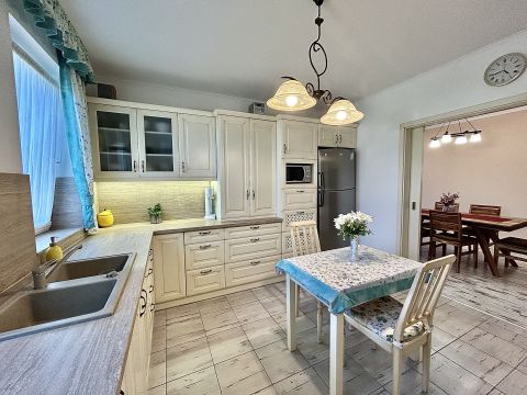 A melegről gáz cirkó fűtés gondoskodik, padlófűtéses hőleadással, míg a nyári hőségben klíma biztosítja a kellemes hőmérsékletet. A műanyag nyílászárókhoz egyedileg készített függönyök tartoznak, az ingatlan biztonságát pedig riasztórendszer garantálja.