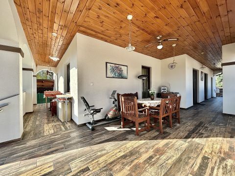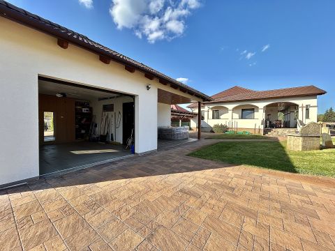 A tágas terasz tökéletes helyszín a pihenésre, míg az öntözőrendszerrel és fúrt kúttal ellátott kert valódi, gondtalan zöld oázist teremt.