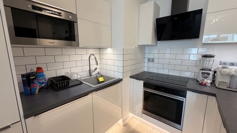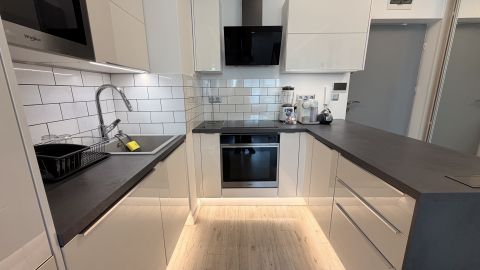 – Prémium, teljesen gépesített konyha Electrolux gépekkel, modern indukciós főzőlappal, sütővel, hűtővel és mosogatógéppel, valamint minőségi szaniterekkel (Hansgrohe, Grohe, Laufen, Roca).