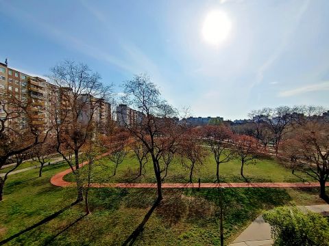 IV., Újpest (város)központjától (pl.: az M3-as metró végállomásától...) mindösszesen csak két villamos megállónyi távolságra lévő, de “a szemet gyönyörködtetően virágszőnyeges Király utcai sétányon” keresztül is - mindösszesen csak 4-5 percnyi kellemes sétával nagyon könnyedén megközelíthető Lebstück Mária utcának - a hihetetlenül parkos, családbarát (játszóteres és sportpályás) zöldterületekkel elképesztően gazdagon körülvett részén, közvetlenül a Semsey parknál - nagyon kulturált lakóközösséggel, felújított lifttel és biztonsági kamerarendszerrel is felszerelt, tízemeletes panel építésű társasház 3. emeletén kínálom eladásra ezt a közvetlen napfényben úszó és műanyag redőnyökkel is felszerelt ablakaiból a Semsey parkra szemet gyönyörködtető örök panorámával büszkélkedő(!), délkeleti fekvésű (reggeltől a déli órákig közvetlen napsütötte, de egész nap rendkívül világos), nettó 35 m2 alapterületén, klímaberendezéssel is felszerelt 1 nagy méretű szobával (nappali + étkező) és egy külön bejáratú hálószobával, világos (ablakos !!!) konyhával, kádas és egyben WC-s fürdőszobával, esztétikailag és műszakilag is már „modernizálásra szoruló” öröklakást!