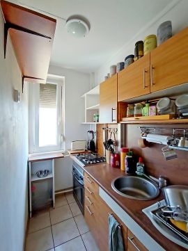 IV., Újpesten a Rózsa utcában (mind a Nyár utcai sétány, mind pedig a Tél utca bevásárlási-, és (köz)szolgáltatási lehetőségekkel nagyon gazdagon ellátott részének szomszédságában, valamint az Árpád útnak - a meghosszabbításra váró, 3-as metróvonal tervezett új megállójától is mindösszesen csak 6-7 percnyi sétatávolságra található részénél) kínálom eladásra ezt a kulturált lakóközösséggel, jó társasházi képviselettel, biztonsági kamerarendszerrel is felszerelt, felújított / rendezett lépcsőházzal és lifttel rendelkező, tízemeletes, panel építésű társasház 4. emeletén lévő, plusz biztonsági ráccsal is lezárt lépcsőházából megközelíthető, keleti tájolású, a reggeli / délelőtti órákban közvetlen napsütötte, a nagy üvegfelületű, műanyag redőnyökkel és szúnyoghálóval is felszerelt, több légkamrás hő-, és hangszigetelt ablakainak köszönhetően fényárban úszó / világos, 35 m2-es alapterületű, praktikus belső elosztású, egy faltól-falig beépített, tolóajtós gardróbszekrénnyel is bebútorozott nagy szobával (nappali + étkező) és egy teljesen külön nyíló hálószobával, beépített és gépesített konyhával, praktikusan zuhanyzósra és közvetlen mosógép bekötésessé átalakított WC-s fürdőszobával és az ezen helyiségeket összekötő előszoba / közlekedővel rendelkező, ami nagyon fontos(!), hogy „nem a forgalmas Rózsa utca felé(!), hanem egy csendes, nyugodt, ősfás-bokros-virágos, családi házas zöldövezetre kellemes panorámával büszkélkedő” esztétikailag és műszakilag is jó állapotban lévő (egy tisztasági festés után beköltözhető), nagyon kellemes rezsiköltséggel fenntartható öröklakást!