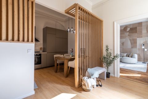 Egy olyan otthon, ahol a belvárosi nyüzsgés mellett valódi nyugalmat találsz. Letisztult terek, harmonikus kialakítás és időtálló részletek találkoznak ebben a lakásban.