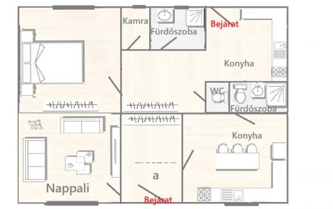 Az ingatlan felújítandó állapotú, jelenleg két külön lakásra osztva, mindkettő saját bejárattal és külön mérőórákkal rendelkezik, így akár többgenerációs otthonnak vagy befektetésnek is ideális választás.
