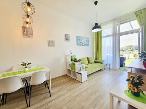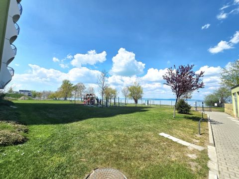 Ebben a közvetlen vízparti lakóparkban most elérhetővé vált egy igényesen berendezett, azonnal költözhető lakás, amelyhez 22 m²-es saját kert is tartozik – pár lépésre a Balaton partjától.