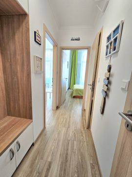 amerikai konyhás nappali étkezővel, külön nyíló hálószoba, fürdőszoba, külön WC kézmosóval, előszoba.