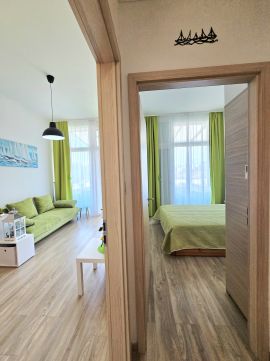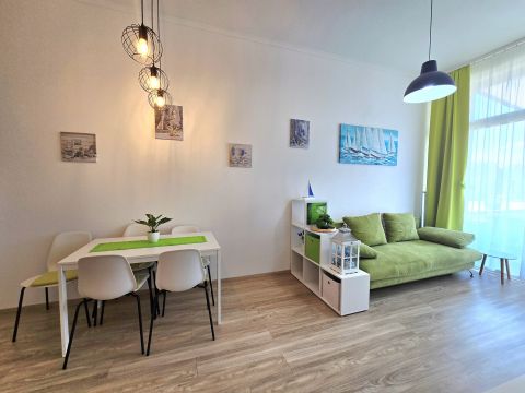 A kertkapcsolat külön értéket képvisel, hiszen a vízparti lakásoknál ez kifejezetten ritka adottság.