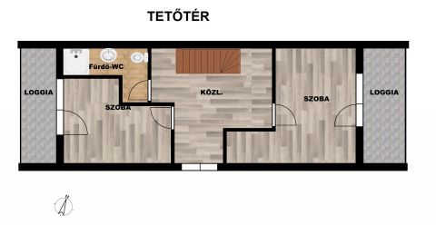TETŐTÉRBEN a közlekedőből 2 teljes értékű SZOBA, zuhanyzós fürdőszoba-WC érhető el. Mindkét szobához hangulatos LOGGIA csatlakozik.