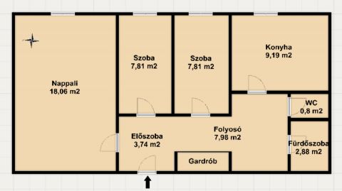 egy 59 m²-es, 1+2 különnyíló félszobás, keleti tájolású, világos lakást.