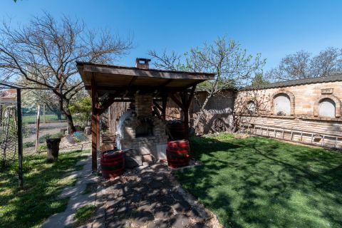 A telken belül közvetlenül a főépület mögött egy melléképület található, amelyben egy műhely, garázs és tároló kapott helyet, valamint egy szuper kemence is rendelkezésre áll!