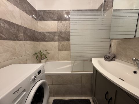 Kényelmes előszoba, szeparált illemhely kézmosóval, tágas, napfényes nappali, modern konyha-étkezővel, kádas fürdőszoba, valamint 2 hálószoba alkotják a helyiséglistát.
