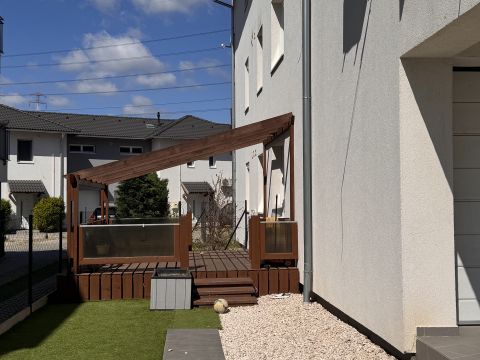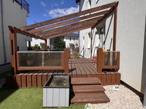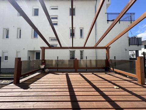 A lakás FÖLDSZINTEN helyezkedik el, SAJÁT KERTJE van, privát terasszal, kerti tárolóval.