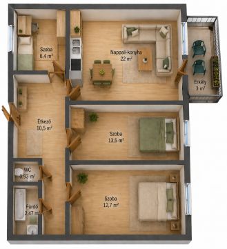 négy különnyíló szoba, jól elkülönülő életterek és kényelmes közösségi terek teszik ideálissá családoknak, összeköltözőknek vagy akár otthoni munkavégzéshez is.