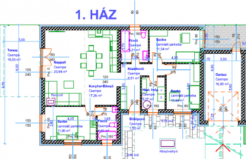 A lakótér 97 nm + 16,8 nm garázs + 19,5 nm terasz