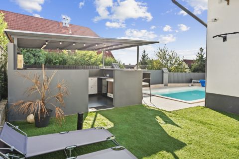 Eladásra kínálok Kozármisleny központjában egy önálló 230 m²-es családi házat, 5 szobával , 2 fürdőszobával ,garázzsal medencével , medencénél bár is van. kamera rendszerrel el látott. Full panoráma van az egész mecskeoldalra! Parkolás 5 auto részére megoldott.