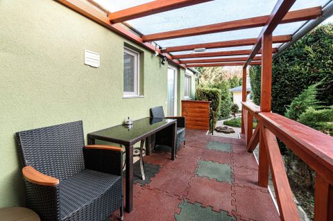 Az ingatlanhoz tartozik egy különálló, teljes értékű közművesített vendégház is, így vendégei vagy akár egy nagyobb család tagjai is kényelmesen élvezhetik a privát terek adta lehetőségeket.