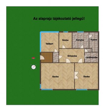 Az ingatlan elosztása praktikus: két kényelmes szoba, egy félszoba, valamint egy világos, 11 m²-es télikert, amely bővíti a lakótér lehetőségeit. A ház felújítandó, ami lehetőséget ad arra, hogy teljes mértékben az új tulajdonos elképzelései szerint szülessen újjá. A padlástér beépíthető, így akár további lakószint is kialakítható. A fűtés gázkazánnal működik.