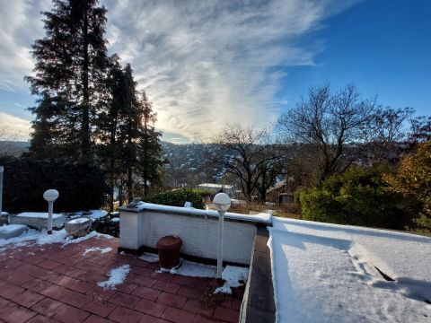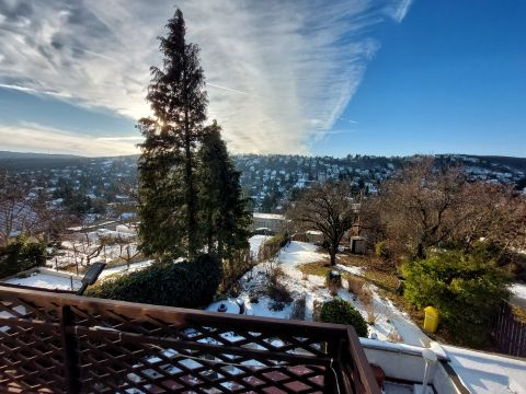 Az emeleten kapott helyet a fő hálószoba, saját TERASSZAL, ahonnan a Hárs-hegytől a PILISIG nyúló lenyűgöző PANORÁMA tárul elénk.