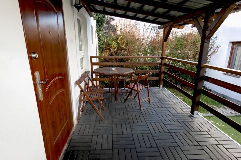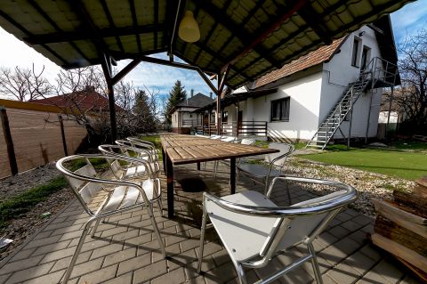 A kert gondozott, kerti főzési, bográcsozási lehetőséggel 10-12 fős szaletli alatt kellemesen tölthető nyári esték adottak.