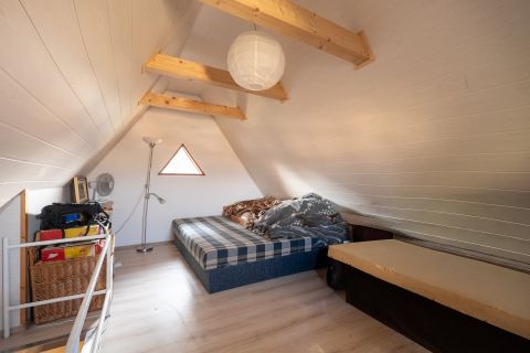 Az ingatlan földszint + emelet + tetőtér kialakítású, így méretéhez képest jól kihasználható terekkel rendelkezik.