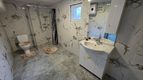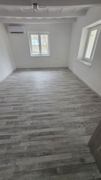 Az épület idén került felújításra - még most is zajlik a befejezése. Kialakításra került egy szép, nagy fedett terasz. Innen nyílik a bejárat a házba, mely a konyha/étkezőbe vezet. Balra találjuk a fürdő/mosdó helyiséget, ahol zuhanyzó kerül kialakításra, mosdóval. A mosdó csapteleppel és kis mosdó alatti szekrénykével kerül átadásra. A konyhában és a fürdőszobában hideg burkolat kerül - 60x60-as járólapokkal (alatta lépésálló szigeteléssel, 4-es betonhálóval és 10 cm-es padloponnal) - a falra pedig csempe került. A konyhában a konyhabútor is része az ajánlatnak a mosogatóval - gépek nélkül. A szobába laminált parketta burkolat került, mely alatt természetesen padlópon és szivacs szigetelés található. Az épületben a teljes villanyhálózat, vízvezetékhálózat kicsererélésre került - 32 amperes villanyóra van igénylés alatt. Az otthon melegét 1 db inverteres klíma és fali elektromos panel fogja adni. A falak belső és külső festése folyamatban (fehér falak - lábazat szürke) , valamint a ház külső szigetelése 15 cm-es nikecellel történik. A nyílászárók is kicserélésre kerültek - új ablakok + új párkányok, bejárati ajtó és a belső ajtók is kicserélésre fognak kerülni. A födémen 10 cm-es közetgyapot szigeletés várható. A padlásfeljáró a fürdőszobából közelíthető meg.