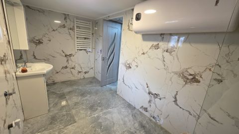 Az építmény tetőtere is teljes felújítást kapott: lindab szürke vadiúj lemezcseréppel borított. A konyhába álmennyezet került.