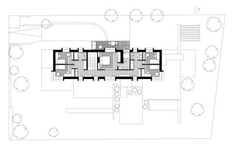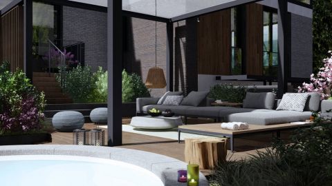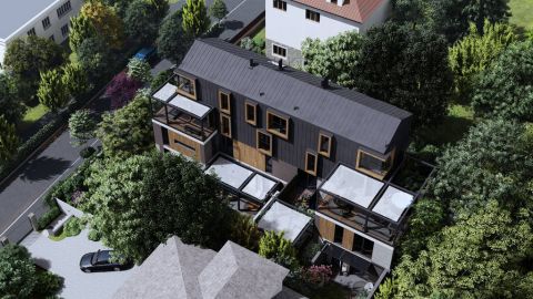 Lakóterület: 540 m2, teraszok: 200 m2, parkoló: 260 m2 (6 gépkocsi számára)