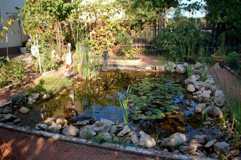 A házhoz tartozik egy fedett garázs is. A szépen kialakított udvar kerti tóval és több udvari tárolóval rendelkezik, továbbá nyári konyha is megtalálható itt, ideális helyszínt biztosítva a baráti összejöveteleknek.