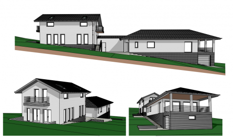 Műszaki paraméterek: 30-as falak 15 cm-es külső szigeteléssel, hőszivattyús padlófűtés, rejtett redőnytokok, klíma kiállások, riasztó vezetékelése.
