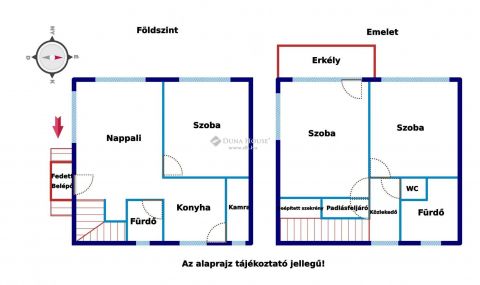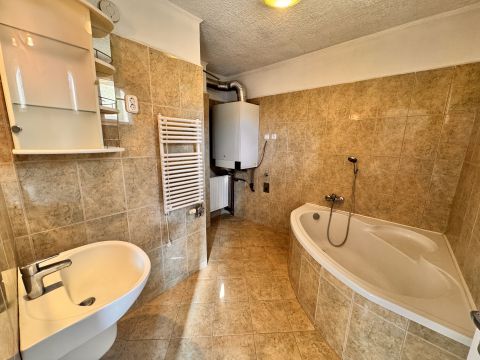 - két nagyméretű lakószoba, -tágas sarokkádas fürdőszoba, -külön WC, -erkély, -közlekedő, -padlásfeljáró