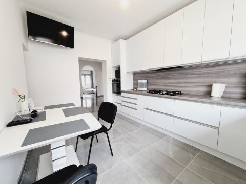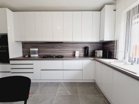 A látványos, exkluzív konyha beépített sütővel, tűzhellyel és mosogatógéppel felszerelt, így azonnal használatba vehető. Mellett egy külön kamra (háztartási helység) is helyet kapott, ami extra tárolási lehetőséget biztosít.
