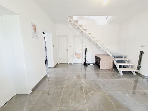 Az emeletre vezető lépcső felújítása már elkezdődött, befejezése az új tulajdonosra vár, így saját ízlés szerint alakítható.
