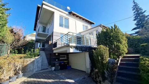 Az 1999-ben épült ingatlan műszaki állapota kifogástalan. A legalsó szinten garázs és tágas tároló kapott helyet. A nappali szintet elegáns, világos terek, nagy üvegfelületek és közvetlen teraszkapcsolat jellemzi, ahonnan szép panoráma tárul elénk.