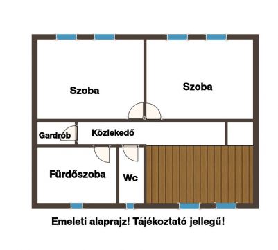 Az emeleten 2 szoba, külön WC és egy fürdőkádas fürdőszoba található, amely kényelmes megoldást nyújt a mindennapokban.