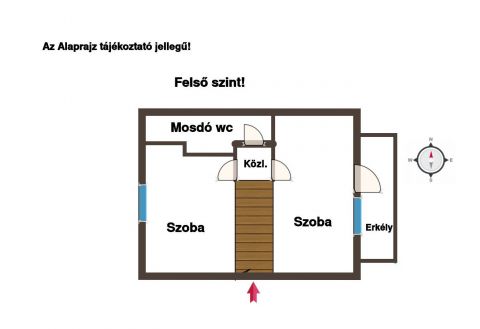 A felső szint :két különnyíló szoba,mosdó,wc,lépcsőtér,hangulatos kis erkély nyílik a hálószobából