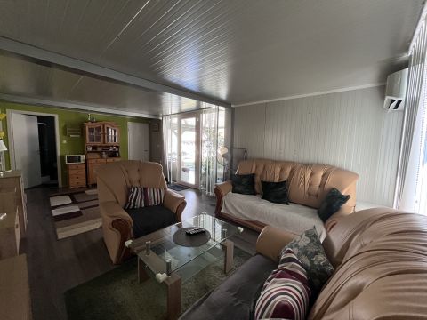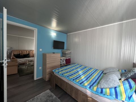 Az ingatlan fix beton alapon áll, stabil, megbízható szerkezettel, míg a tetőszerkezet fa kivitelű. A ház teljes berendezéssel együtt kerül értékesítésre, így az új tulajdonos számára azonnal birtokba vehető és használható.