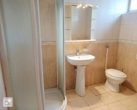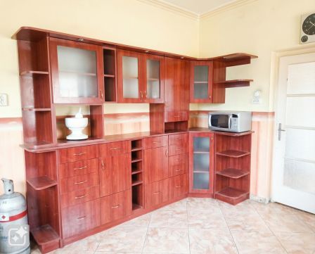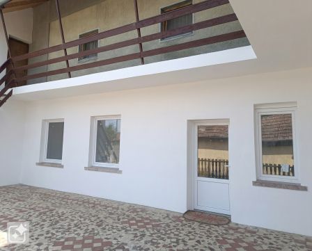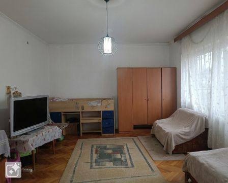 A földszinti fő lakrész tágas terekkel rendelkezik, ahol egy világos nappali biztosít kényelmes életteret a család mindennapjaihoz. A 16 m²-es előszoba kellemes fogadótérként szolgál, innen érhető el a konyha étkezővel, a fürdőszoba WC-vel, valamint egy praktikus kamra is. A ház egyik nagy előnye, hogy a kamrán keresztül, illetve külön bejárattal, a terasz felől is megközelíthető egy önálló lakrész, amely két szobából és egy konyhából áll. Ez a megoldás tökéletes lehet kétgenerációs együttéléshez, külön élettér kialakításához, vendéglakásnak vagy bérbeadásra is.
