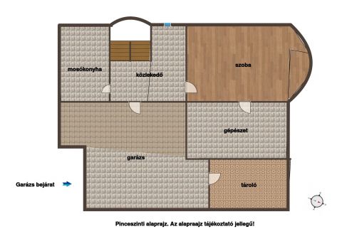 Pinceszint: garázs, szerszámos, kondiszoba, mosókonyha és lépcsőtér