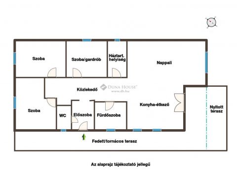 3 hálószobás, amerikai konyhás-nappalis, távirányítós kapuval.